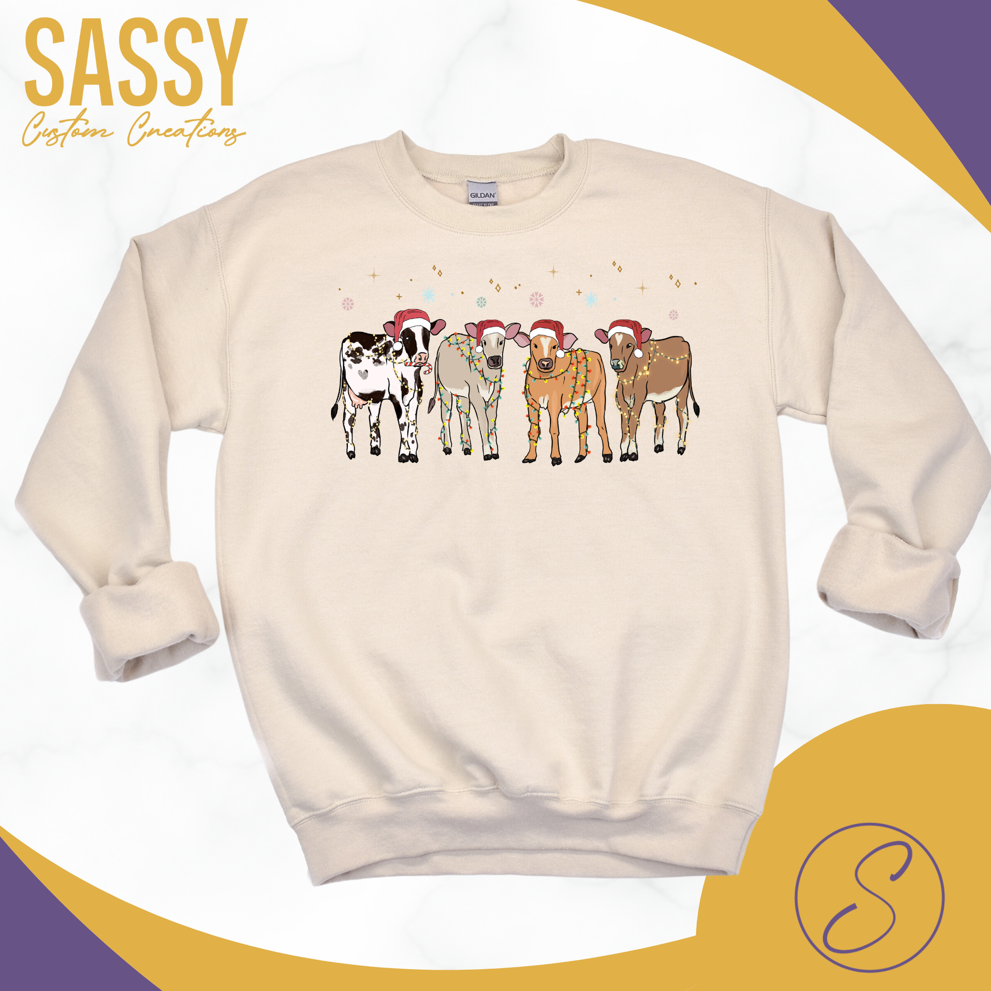 Spread some festive cheer with MERRY MOO-MAS! Our Christmas cow crewneck sweater will make you the life of any event, while keeping you cozy in our 3 season fabric. Perfect for layering, you'll be the talk of the holiday season.