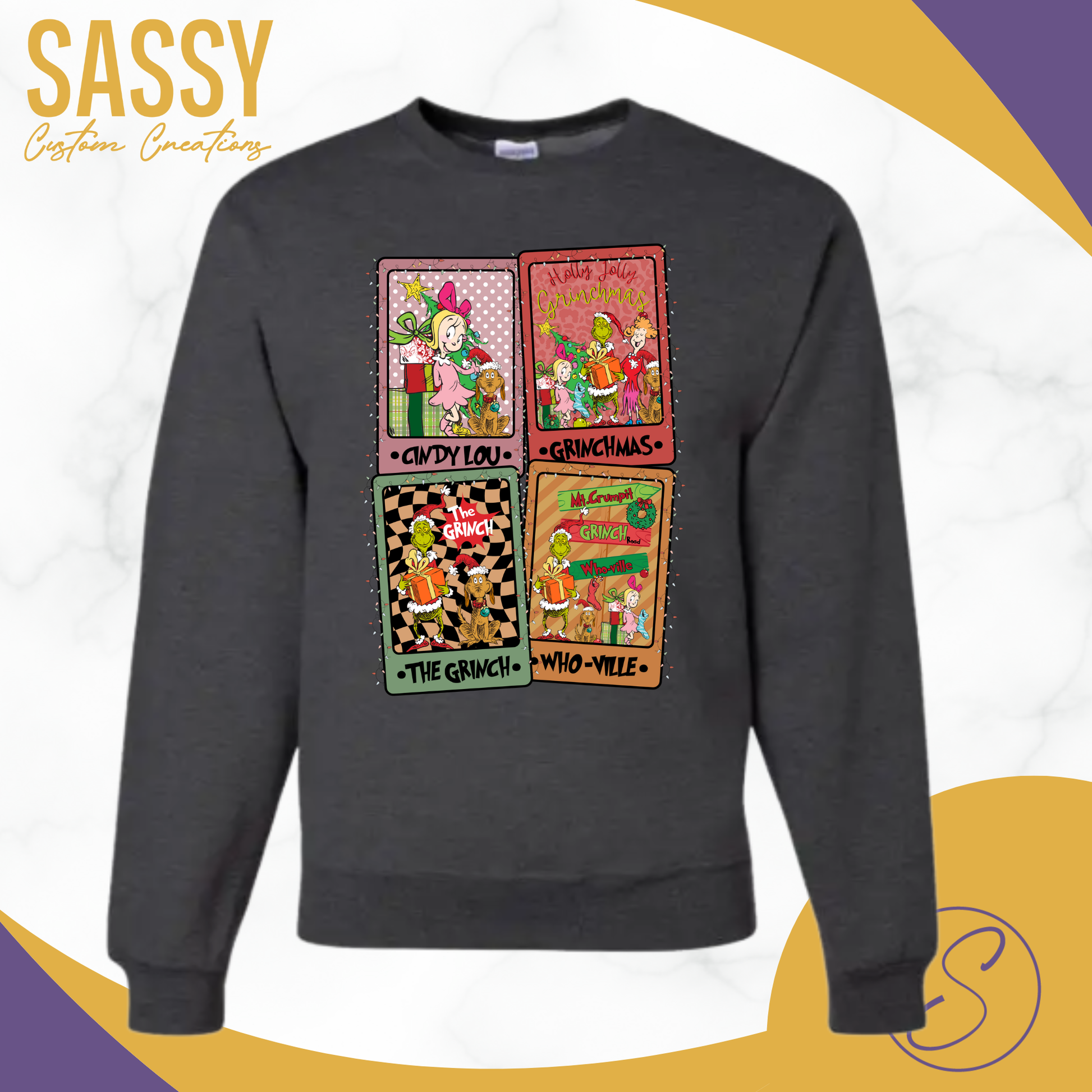 Get ready to get your vintage vibe on with this CINDY LOU & GRINCH crewneck sweater - taking you back to the good ol' days of the original GRINCH and CINDY LOU (well, okay, not quite all the way back to 1957, but pretty darn close!)